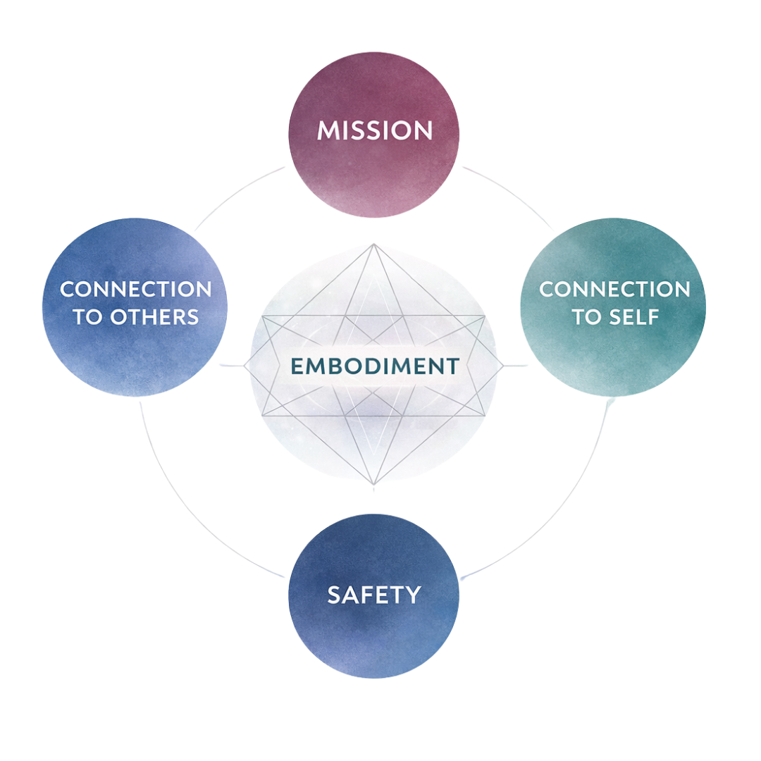 Embodiment - Where everything lands in the body. The thread that weaves through everything else - the version of you that stops performing and starts transmitting.